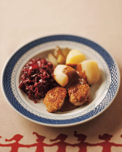 - デンマークのミートボール/紫キャベツの甘酢煮/茹でじゃが芋/ブラウンソース