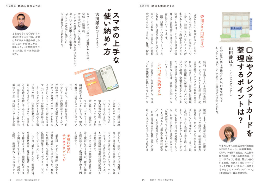 自分の思いを描く老後のために、口座整理などしておいた方がよいことを山田静江さんに伺いました。