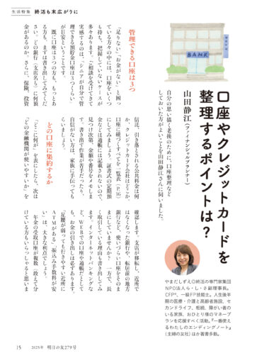 | 015 | 口座やクレジットカードを整理するポイント 山田静江 |