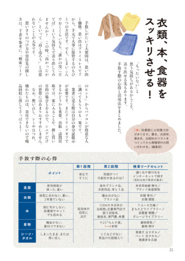 | 022 | 衣類、本、食器をスッキリさせる! |