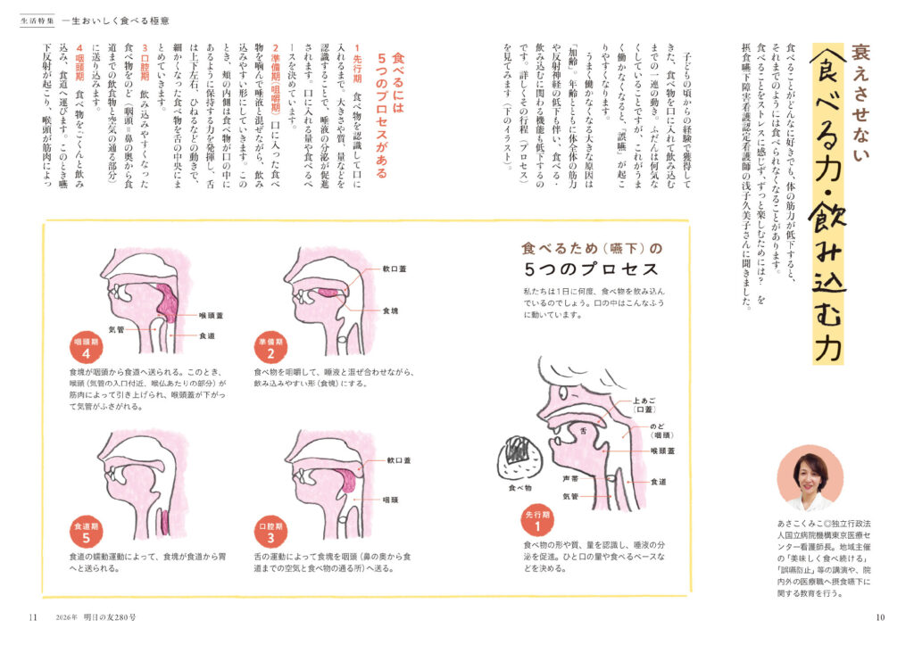 実は体のさまざまな部分の動きが、絶妙なタイミングでピタリと合って、できているのです。その体の機能を維持しながら、できるだけ最期まで、食べることを楽しみましょう。