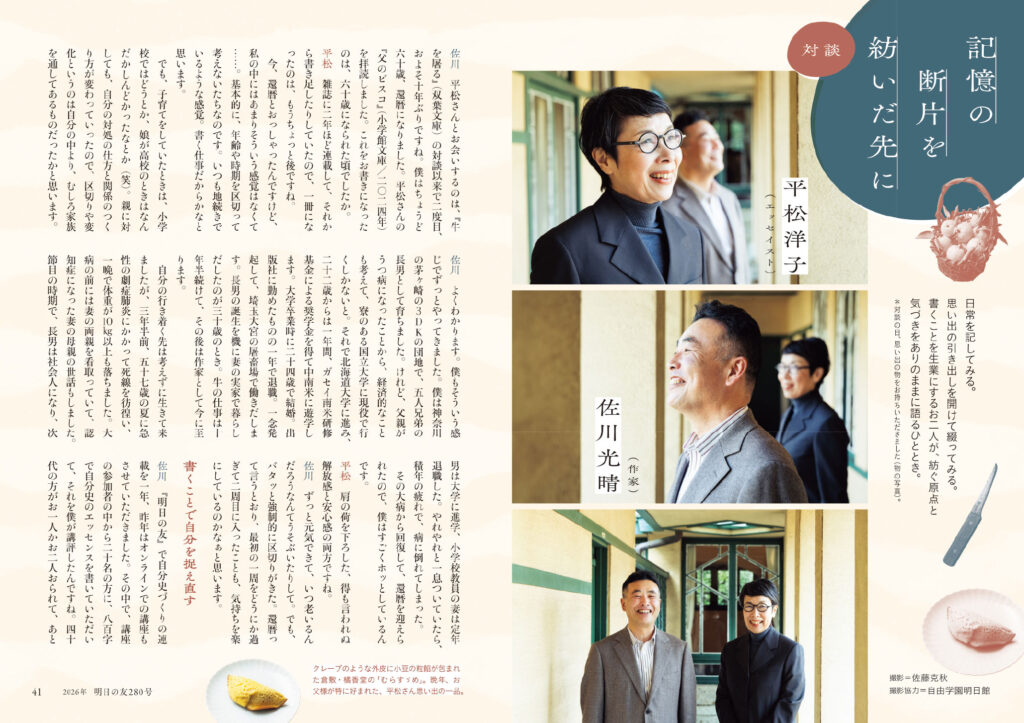 今号で、佐川光晴さんの「自分史づくり」、太田昌克さんの「被爆者が紡ぎ続けた戦後80年をたどる」、泉名彩乃さんの「季節のスイーツ」の連載が最終回です。人生の尊さを照らし、暮らしを包む記事をありがとうございました。心より感謝申し上げます。