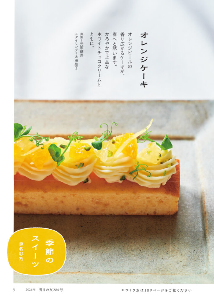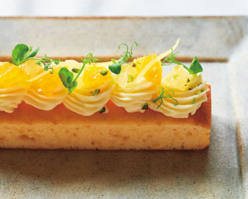 オレンジピールの香り広がるケーキが、春へと誘います。かろやかで上品なホワイトチョコクリームとともに。