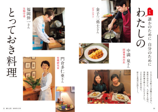 さまざまな分野でご活躍の4人の方に、家族や自分のため、人が集まる時の、得意料理を教えていただきました。
