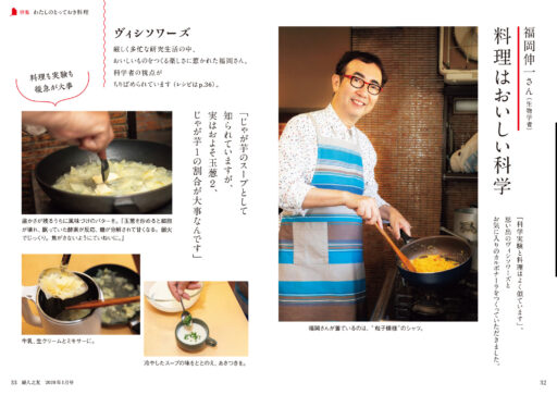 思い出のヴィシソワーズとお気に入りのカルボナーラ(『婦人之友』2023年10月号)をつくっていただきました。