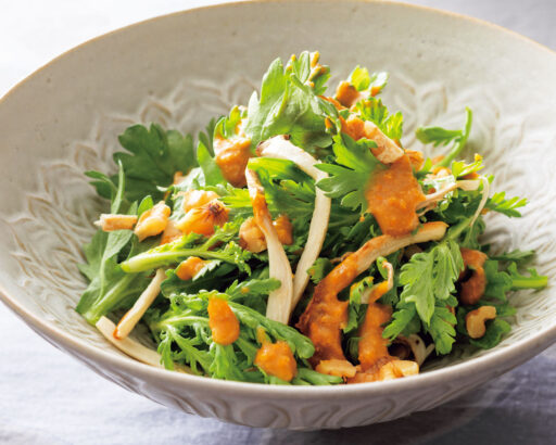 - 春菊とエリンギのサラダ みかんドレッシング