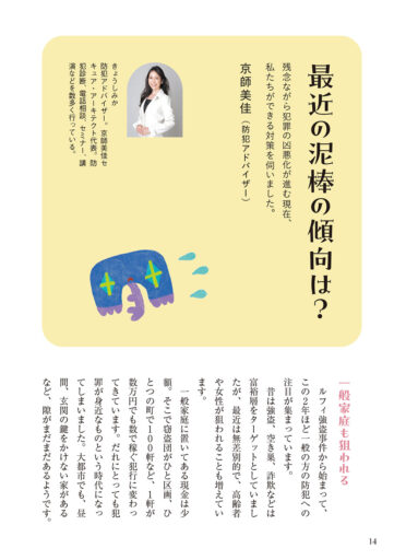 最近の犯罪の傾向と、わが家を守る「攻めの対策法」を、防犯アドバイザーの京師美佳さんに教えていただきました。