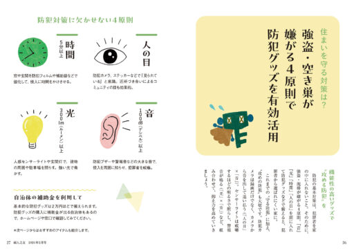| 026 | 強盗・空き巣が嫌がる4原則で、防犯グッズを有効活用 |