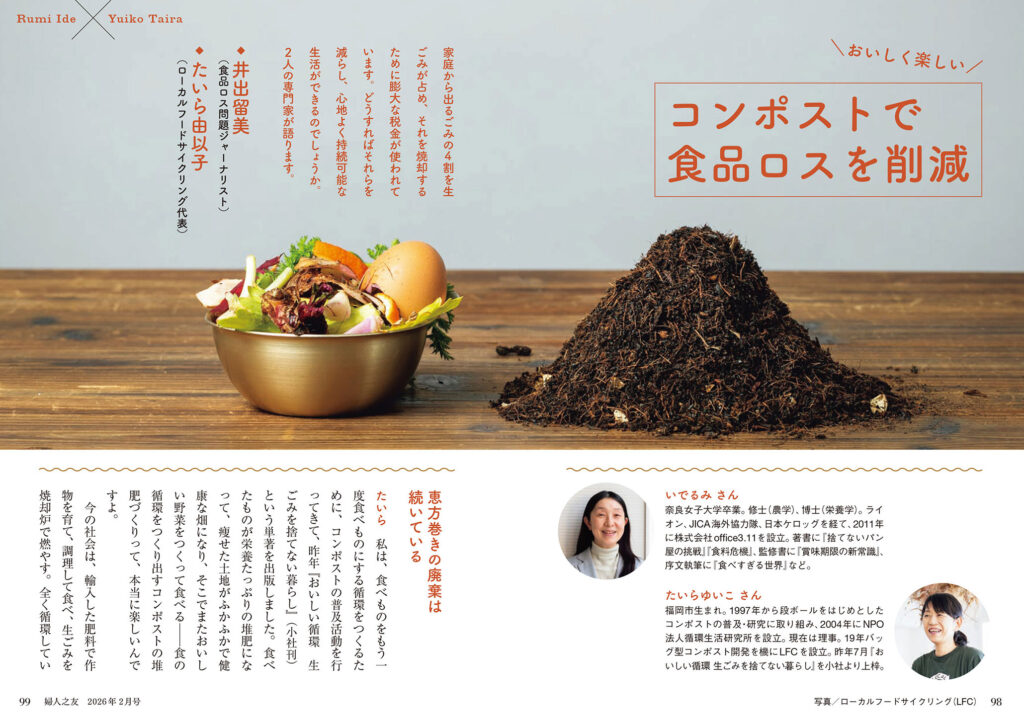 | 098 | おいしくて楽しい コンポストで食品ロスを削減 井出留美(食品ロス問題ジャーナリスト)×たいら由以子(ローカルフードサイクリング代表) |