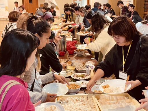 この日いただいた食事。ビュッフェ方式なので、2周、3周する参加者も。