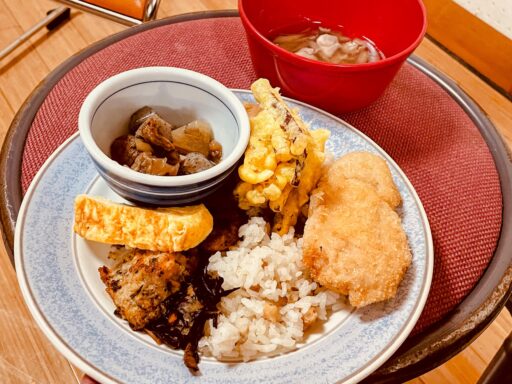 今日知り合った仲とはいえ、「あの人が作ってくれた」と思うとありがたみが増す。地元の恵みたっぷりの海の幸と山の幸を同時に味わえるのも贅沢だ。