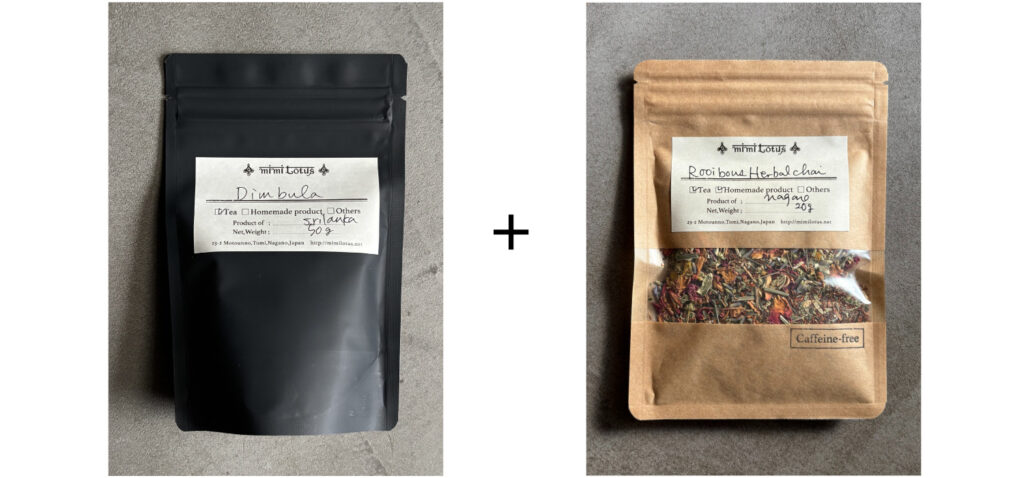 - 原材料名:ルイボルティー、ローズ、カモミール、ラベンダー、レモンバーベナ、ペパーミント、レモングラス、カルダモン