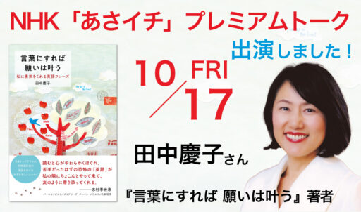 お知らせ田中慶子さん NHK「あさイチ」プレミアムトークに出演!