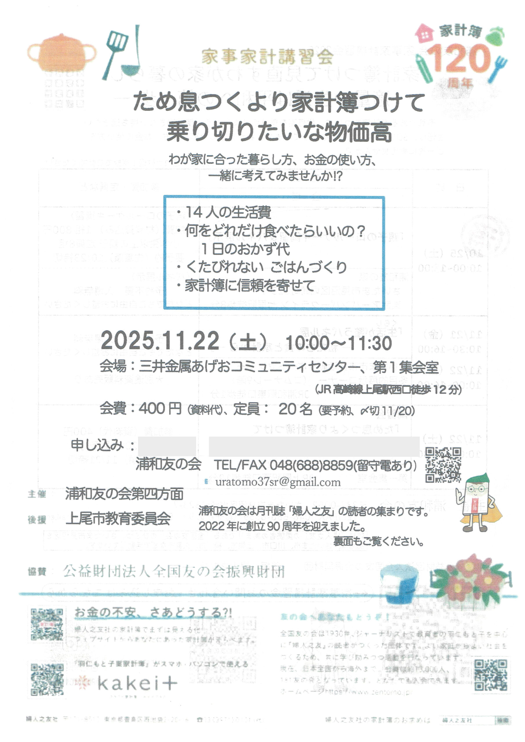家事家計講習会 チラシ